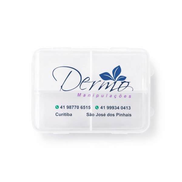 O Porta Cápsulas da Dermo Manipulações é um acessório organizacional projetado para facilitar a rotina de quem utiliza suplementos ou medicamentos manipulados.